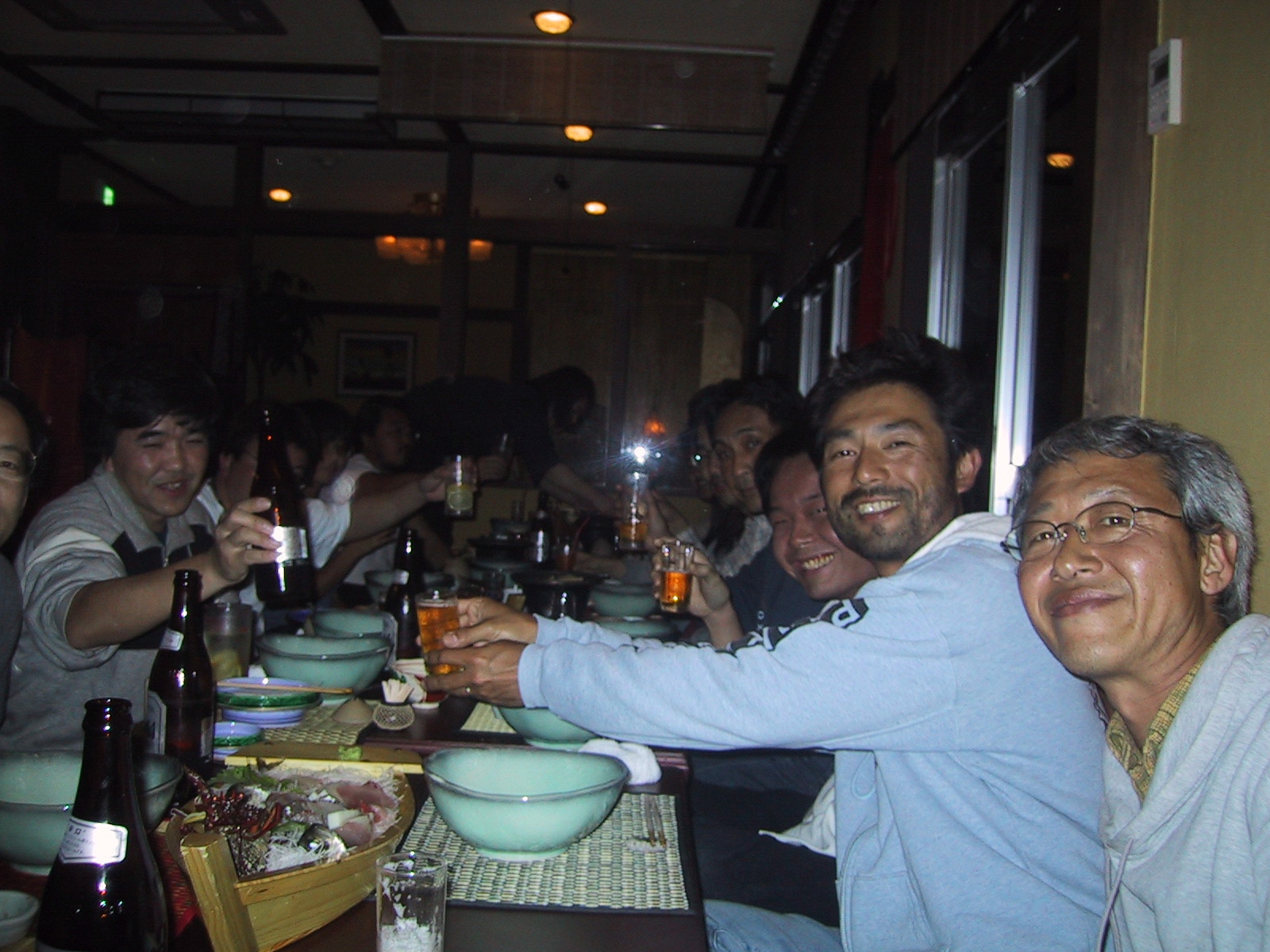 反田、伊東会長、野間、安斎、工藤 坂本事務局長と娘 光、泉